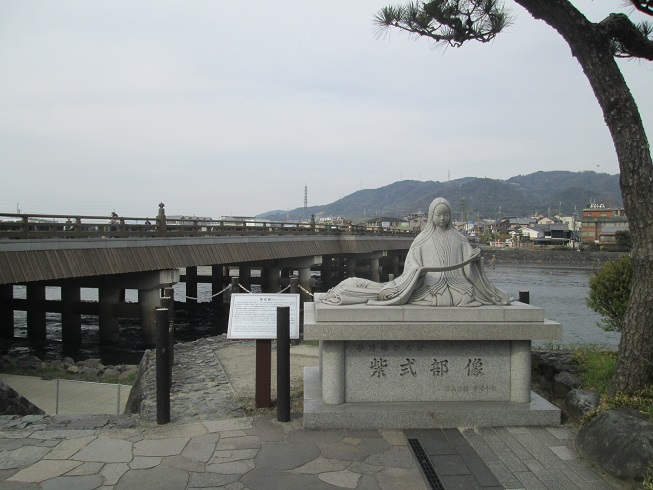 而名作 源式物語作者的紫式部像也在橋邊 ,帶領旅人前往小說中的世界