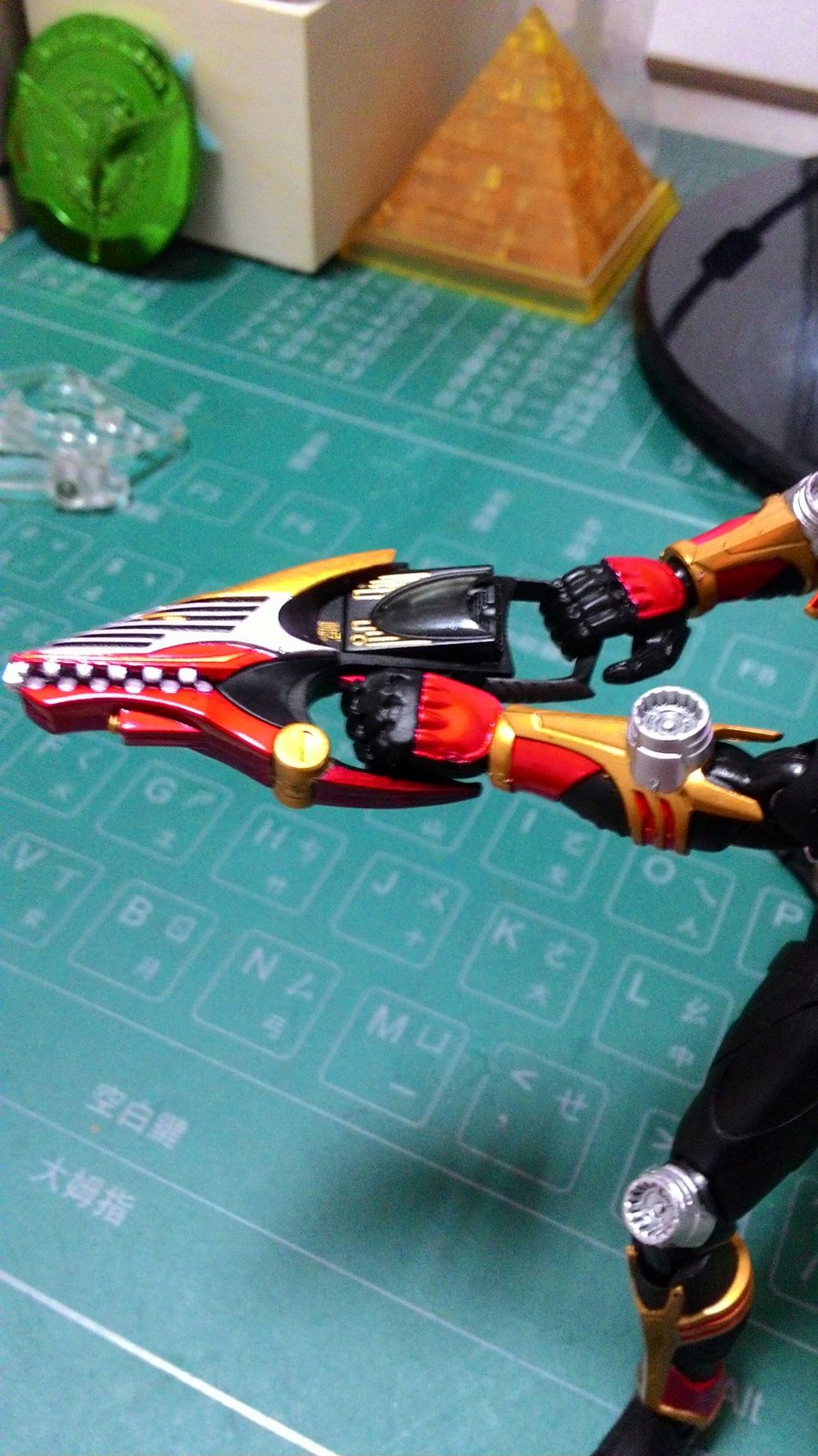 跟平常狀態下的龍騎相比 假面騎士系列那代表性昆蟲般的眼睛更明顯了 但採用的也是很有誠意的透明零件來表現