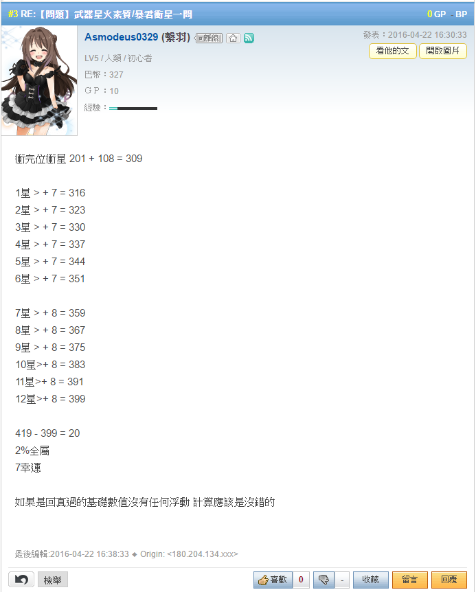 利用武器16星當下+幾攻,至20星後為幾攻,進一步推測過程之星力增幅