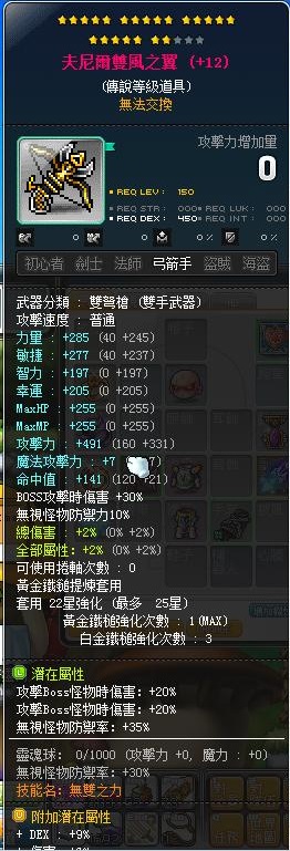 KMS 武器 - 19~22星:【MapleStroy】200神秘冥界 (22星星力)
