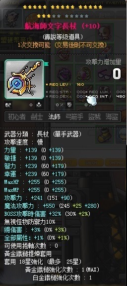* 屬性部分可以下移至:「星力系統能力增幅表」做統一說明