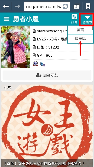 點小屋首頁右上角的「功能表」→精華區