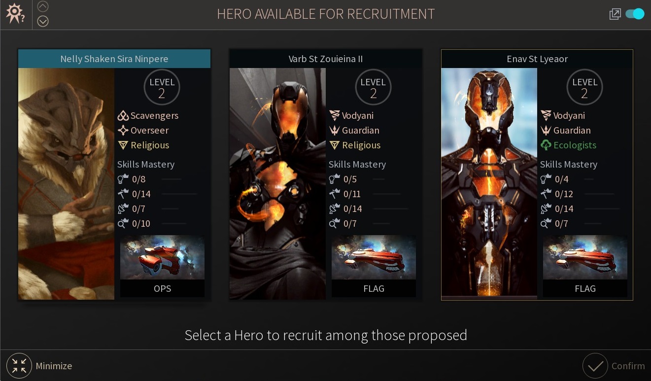 3.The Vodyani - 一個過度工業化而快滅絕的種族,透過虛擬文物得以"保存"了下來,並奉其為神。在遊戲內他們不會在星球上殖民;一切生存都在船艦上,可於任一可生存的星球上扎根或是駛離尋找下個根據地。