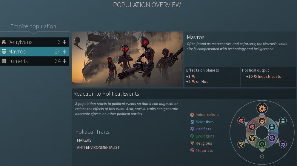 這些種族可能有自己的星球(類似文明5城邦),或是散步在各星球的居民生存著