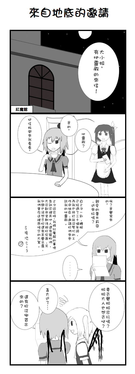 其實畫第四格的時候,腦袋裡突然蹦出一個神奇的想法:就讓蕾米說出「如果不去可以直接完結了...」直接打破第四面牆。還好理性最後阻止了我。