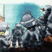 「我知道,試試看別的吧。你有速度優勢如果可以能用盾牌是最好的,但是要不要玩玩看固定機槍?」「你才剛說我有速度優勢...」「所以我說是玩玩看啊,這是我的工作你也搶不了。」卡秋沙走到了葉夫根尼平常會自己架起來的機槍後面,稍稍往後仰固定住機槍,開始對著各種亂七八糟的目標掃射,在牆壁上打出一大堆的彈孔。