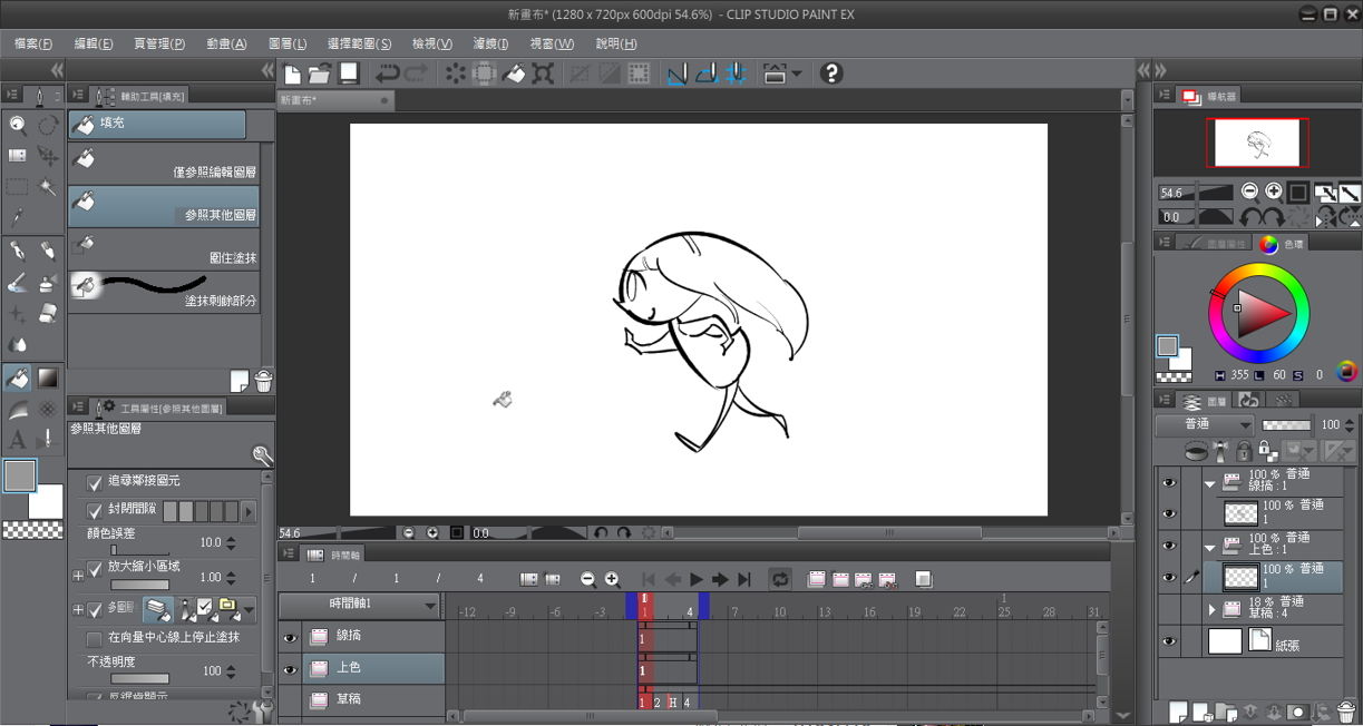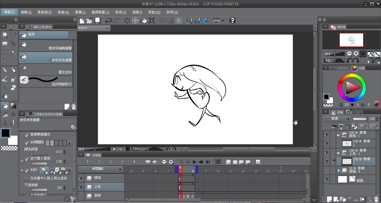 28.使用【參考其他圖層】的油漆桶工具,把動畫上色