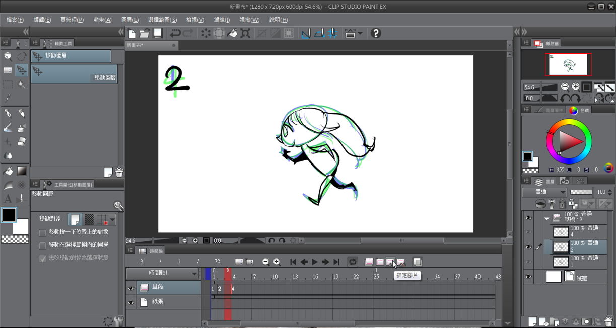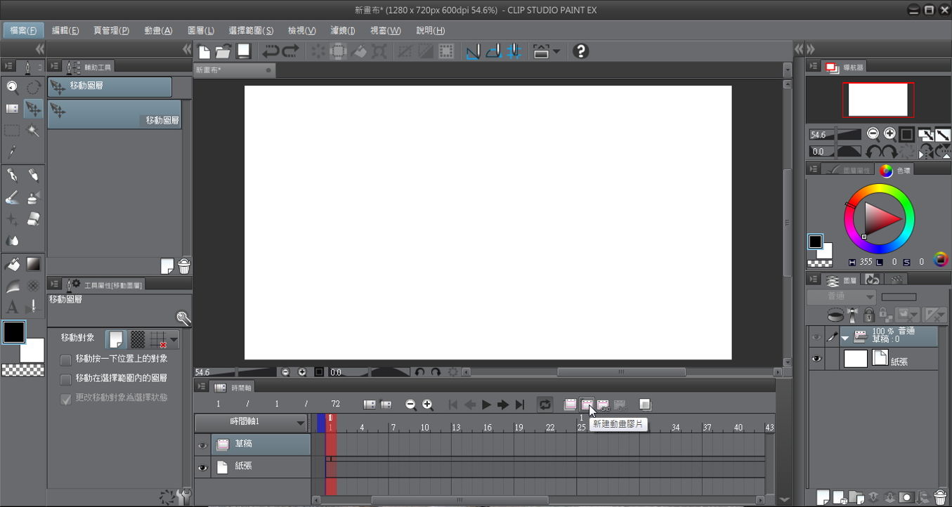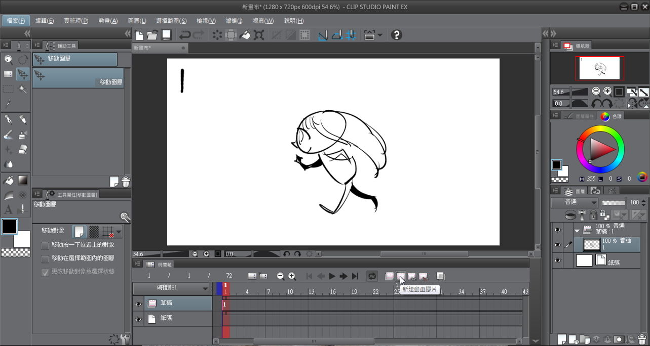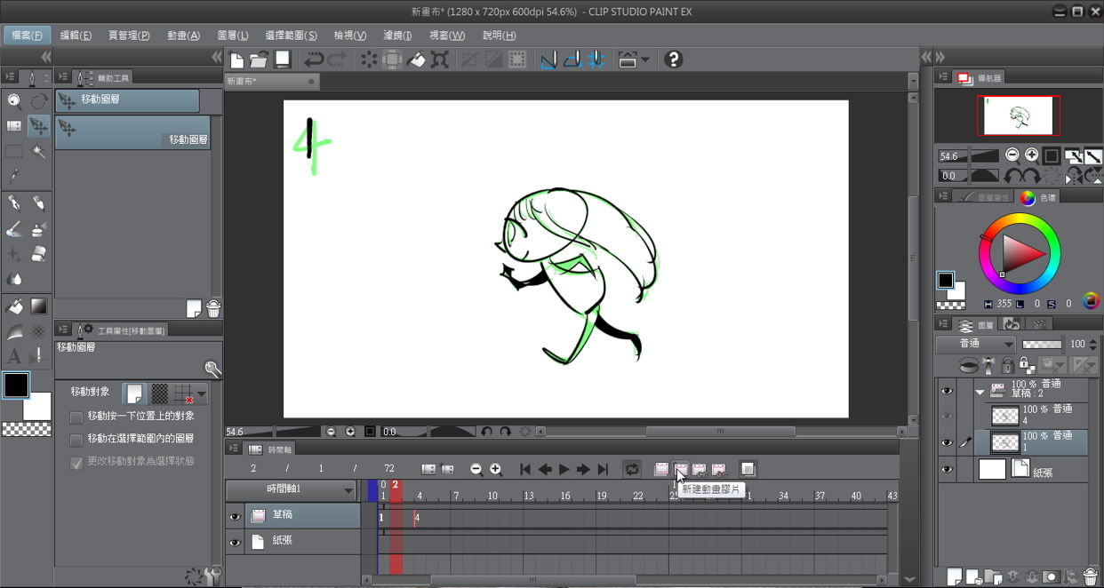 10.完成後,我們準備要畫下一個影格,再次點選新建動畫膠片