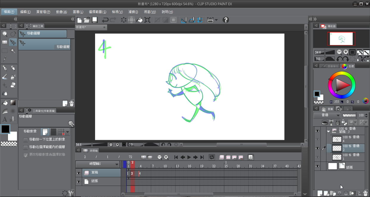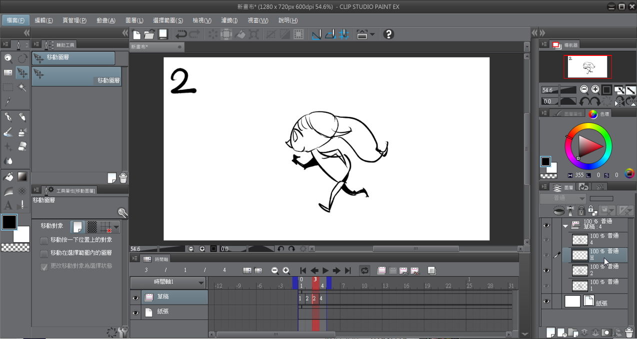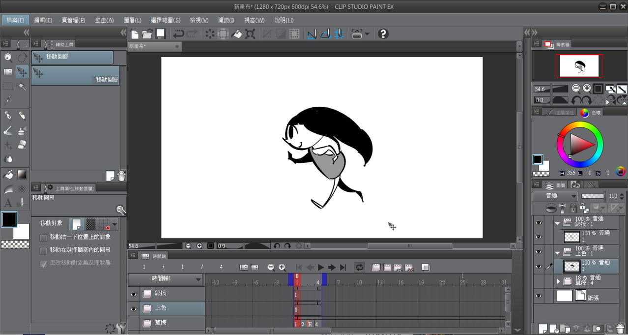 29.如果有要上陰影或其他物件等等的都能使用動畫資料夾分開繪製,甚至分開輸出到其他軟體做後製。CSP做完的動畫也能直接輸出動化GIF很方便