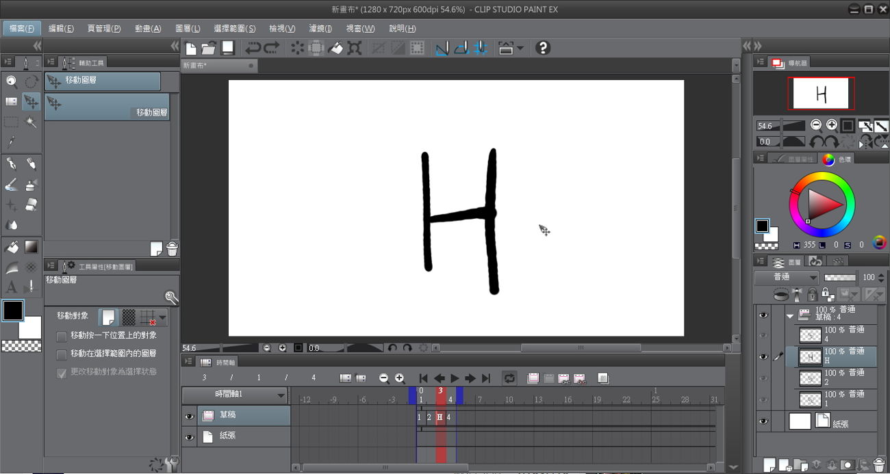 25.如此一來所有被指定為【H】的影格都會顯示H圖層的內容