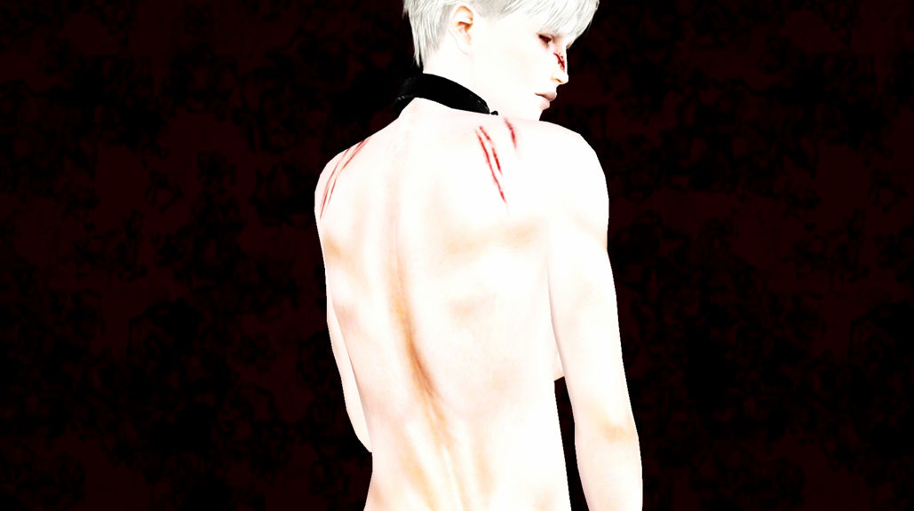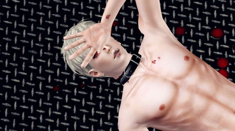 稍稍習慣光線後,他嘗試移動自己的身體,隨即感覺到脖子上的束縛感。伸手摸到的東西,整體是皮製的,接近左邊鎖骨上方有著金屬製的扣環。