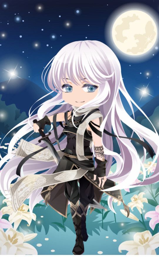 外型:高瘦、髮色為月亮般的銀色、瞳色為清澈的藍色