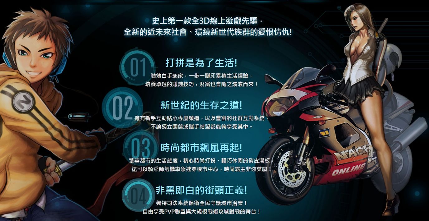 N-age是首款可以在遊戲中利用機車享受奔馳快感的線上遊戲,
