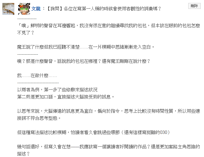各位在寫第一人稱的時候會使用客觀性的詞彙嗎?