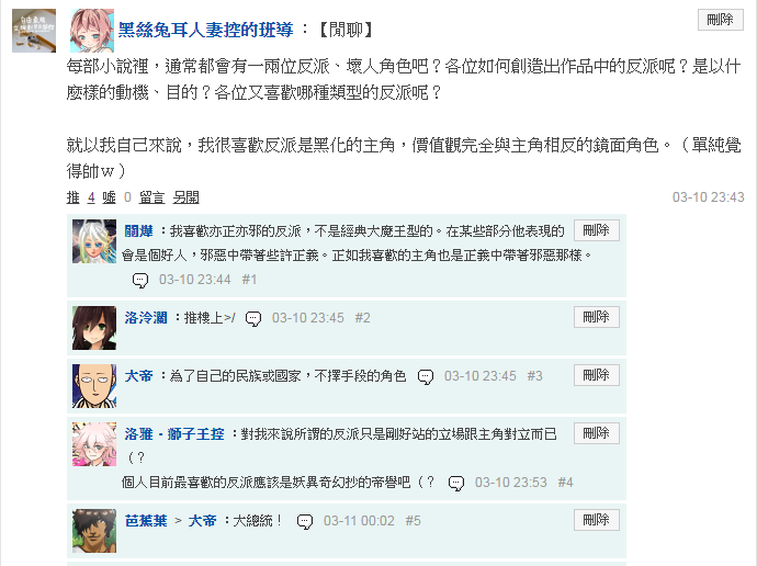 各位如何創造出作品中的反派呢?是以什麼樣的動機、目的?各位又喜歡哪種類型的反派呢?