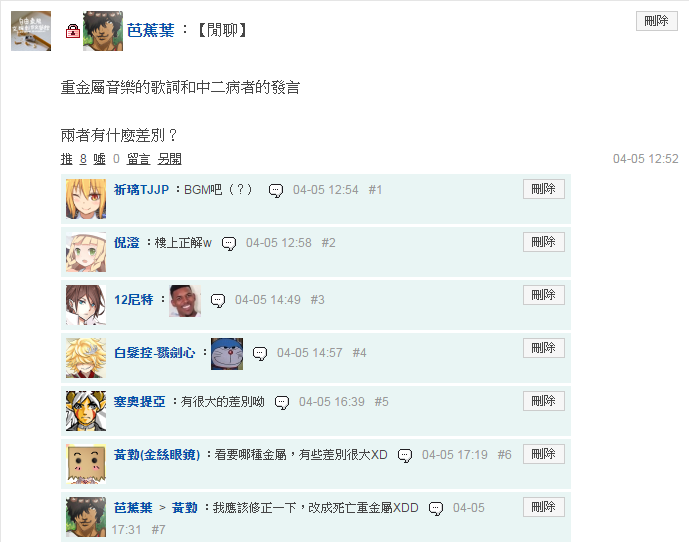 重金屬音樂的歌詞和中二病者的發言