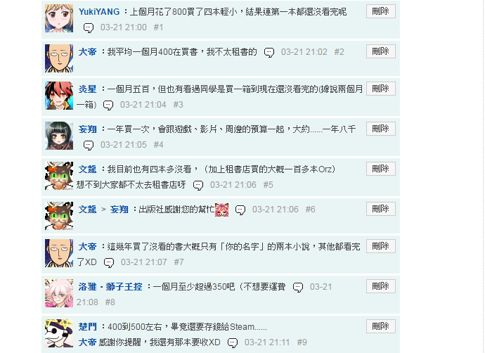 各位會花多少錢在小說、漫畫上?怎麼花費呢?