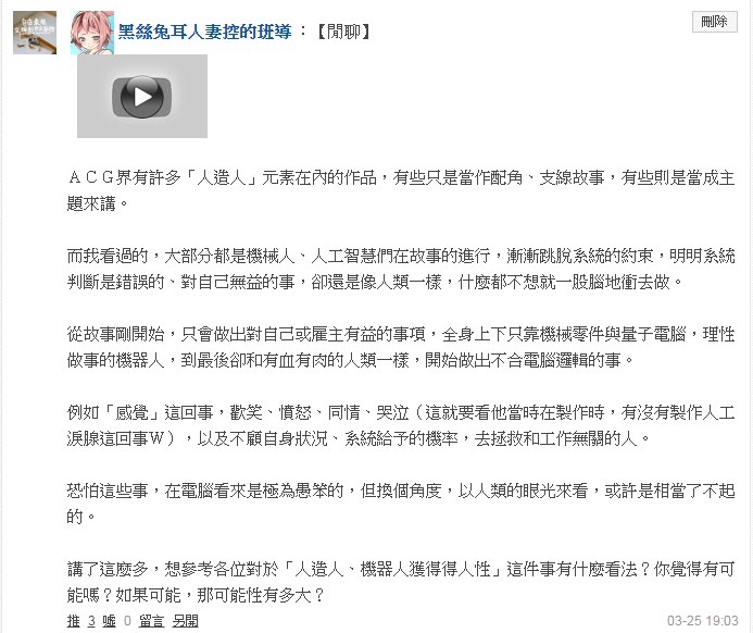 「人造人、機器人獲得得人性」這件事有什麼看法?