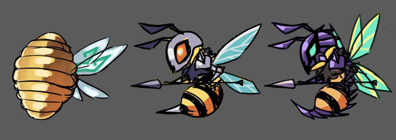 小怪-蜂蛹、蜂兵、蜂兵團長草圖