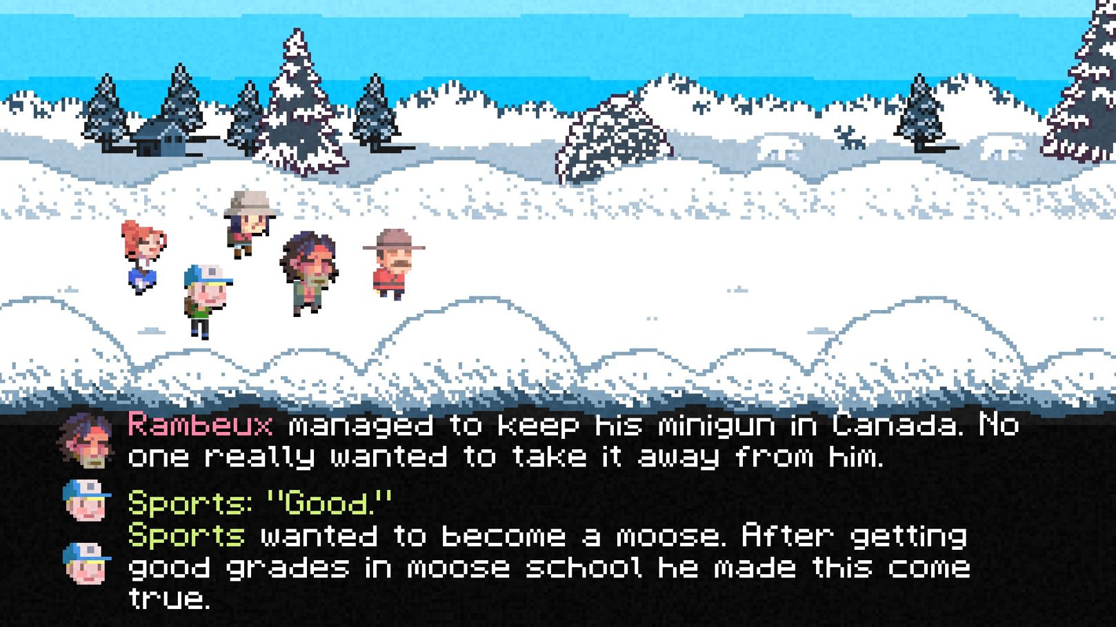 可能是沿路上、也可能是在資源的搜括過程中遇上。除了遊戲設計出獨特的特殊角色外,也不乏能見上許多其他遊戲或電影中來這裡客串一起前往加拿大的遊戲角色。有L4D系列角色、章魚爸爸、林克、超人、機器戰警、藍波等等,豐富化玩家的逃亡旅程。
