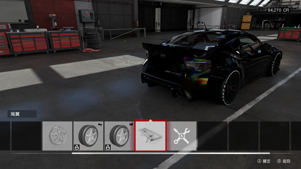 改裝車輛有輪圈樣式、前輪圈尺寸、後輪圈尺寸、尾翼以及快速官方認可