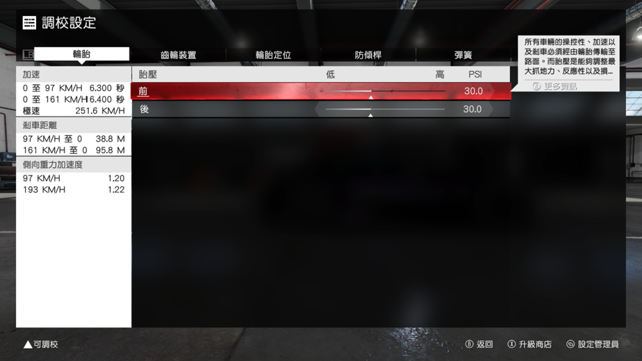 調校設定 可以在賽道上調校、測試並改善自己的調校設定