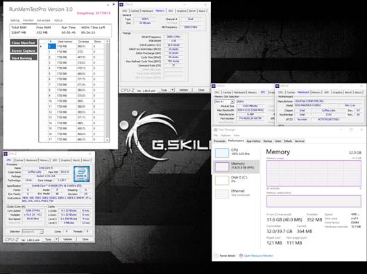 為第8代Core處理器及Z370主機板專屬設計的幻光戟DDR4-4000MHz 32GB(8GBx4)規格,提供了高質感的RGB幻彩體驗,是Modding電腦改裝玩家的不二首選。搭配時序CL18-19-19-39及1.35V電壓,能給予兼具視覺及效能的雙重饗宴。 此規格在ASUS ROG MAXIMUS X HERO(WI-FI AC)主機板及Intel Core i5-8600K 處理器上通過驗證,以下為燒機測試圖: