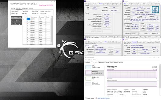 在Intel新一代高階平台上,芝奇推出業界最高頻率的三叉戟DDR4-4600MHz 16GB(8GBx2)套裝,並搭配時序CL19-25-25-45和 1.5V電壓。對渴望極限效能的超頻玩家而言,此產品無疑又是一次令人震撼的突破,誓將透過新平台發揮最強勁的記憶體性能。此規格是在ASUS ROG MAXIMUS X APEX主機板及Intel Core i5-8600K 處理器上通過驗證,以下為燒機測試圖: