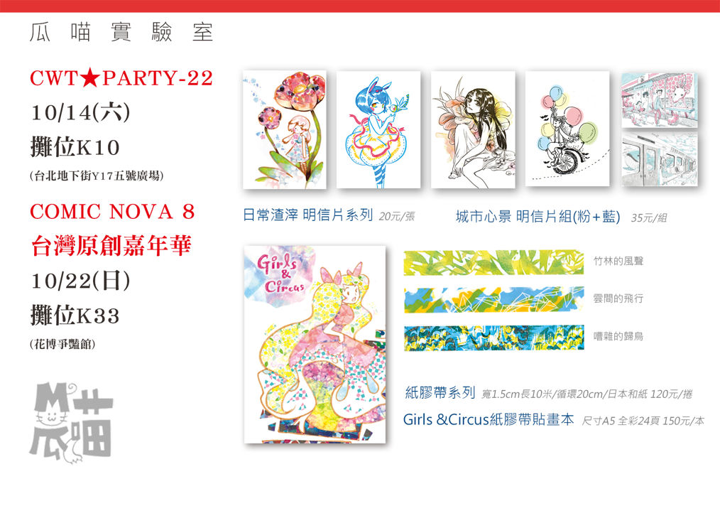 以上場次瓜喵都在攤位上,歡迎來玩玩,翻翻書或簽繪簽名都是OK的~