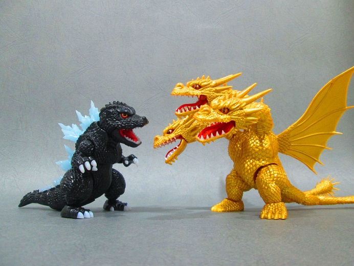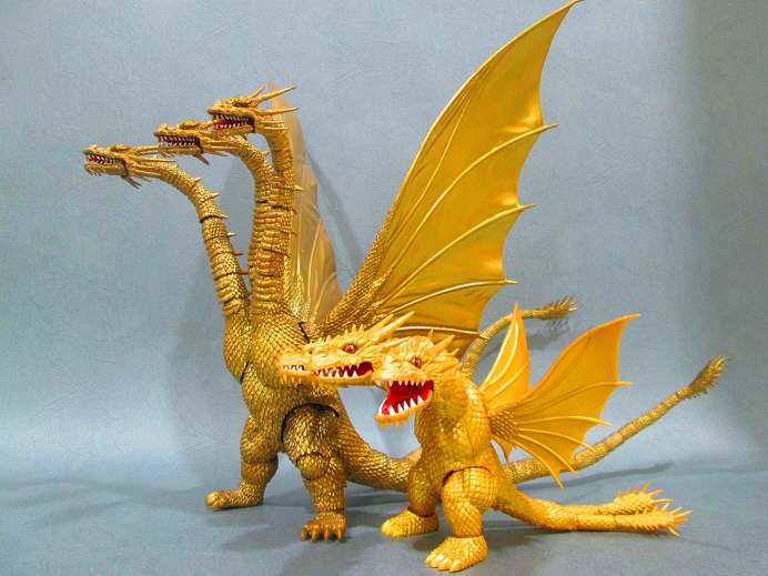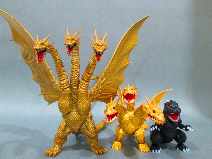 由左至右 SHM三頭龍>富士美三頭龍>富士美哥吉拉