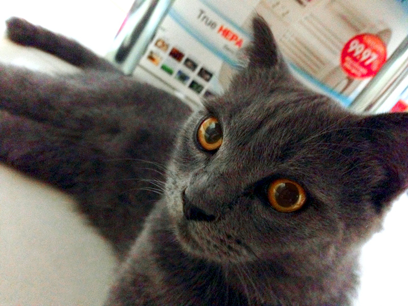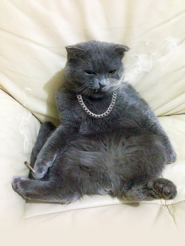 嗯,我沒有很在意別人對我是怎麼的印象,不過常常談到養貓這回事,不少人都會很訝異我有養這種小動物。一隻藍貓。