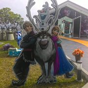 下半身埋在一個鍋子裡,手拿大鐵鎚360度揮舞。