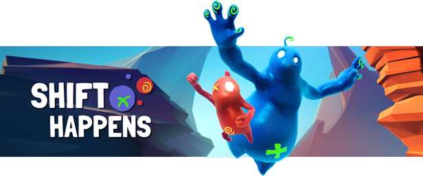 《Shift Happens》是由Klonk Games所開發的合作冒險闖關遊戲,故事發生在一間神祕的果凍生物工廠,主角小紅Bismo和小藍Plom由於一場意外必須齊心協力度過難關。