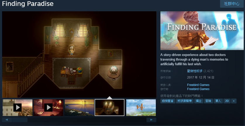 要是前作遊戲《去月球》是在講述如何「傳達」的故事,那麼這一部作品《尋找天堂》,講述的則是如何「接受」的故事。