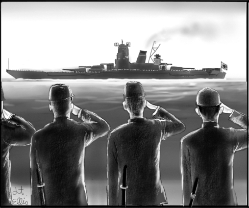 17日晨間,伊豆大島海上,我等遇上盟軍大艦隊。以戰艦『密蘇里(BB-63)』為中心,整支大艦隊一齊向我等這僅僅1艘小小驅逐艦轉動砲口,邊施以武力威嚇邊靠過來時,悲痛莫名的淚水再度奪眶而出。