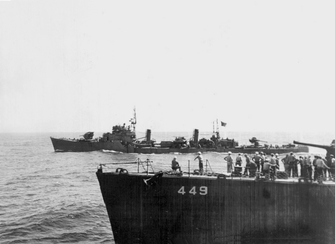 ※『初櫻』這邊日後方知,這艘驅逐艦為『尼古拉斯』,USN史上獲頒最多戰鬥之星(30枚)的武勳艦,前面的照片應當就是這時拍的,這裡可以參考先前的【翻譯】美利堅驅逐艦史話:尼古拉斯(DD-449)