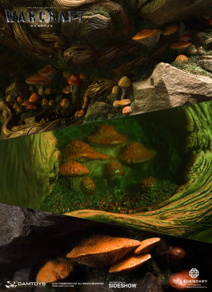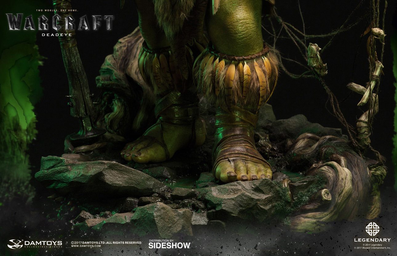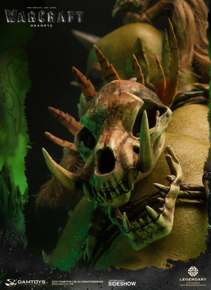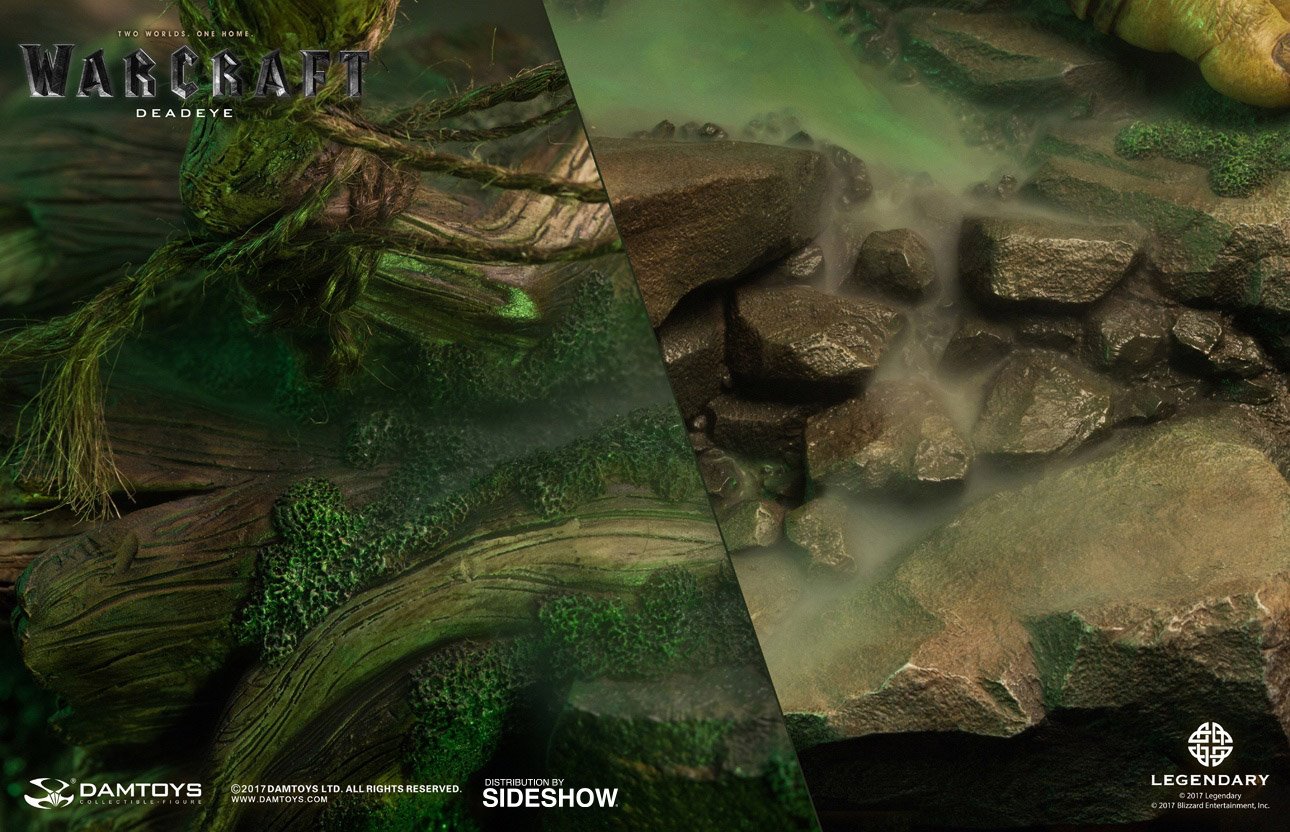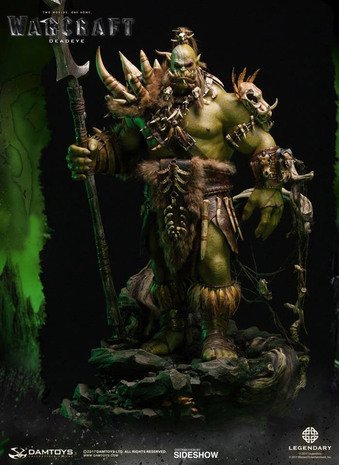 Damtoys 以電影《魔獸:崛起》中形象打造高約 75 公分,寬約 49 公分,深約 48 公分的「基爾羅格 亡眼」雕像,採用逼真頭雕搭配專業植髮技術,並且搭配巨大的石器長茅以及充滿元素、岩石、的森林情境地台,宛如鋼鐵部落正入侵著達艾澤拉斯大陸。