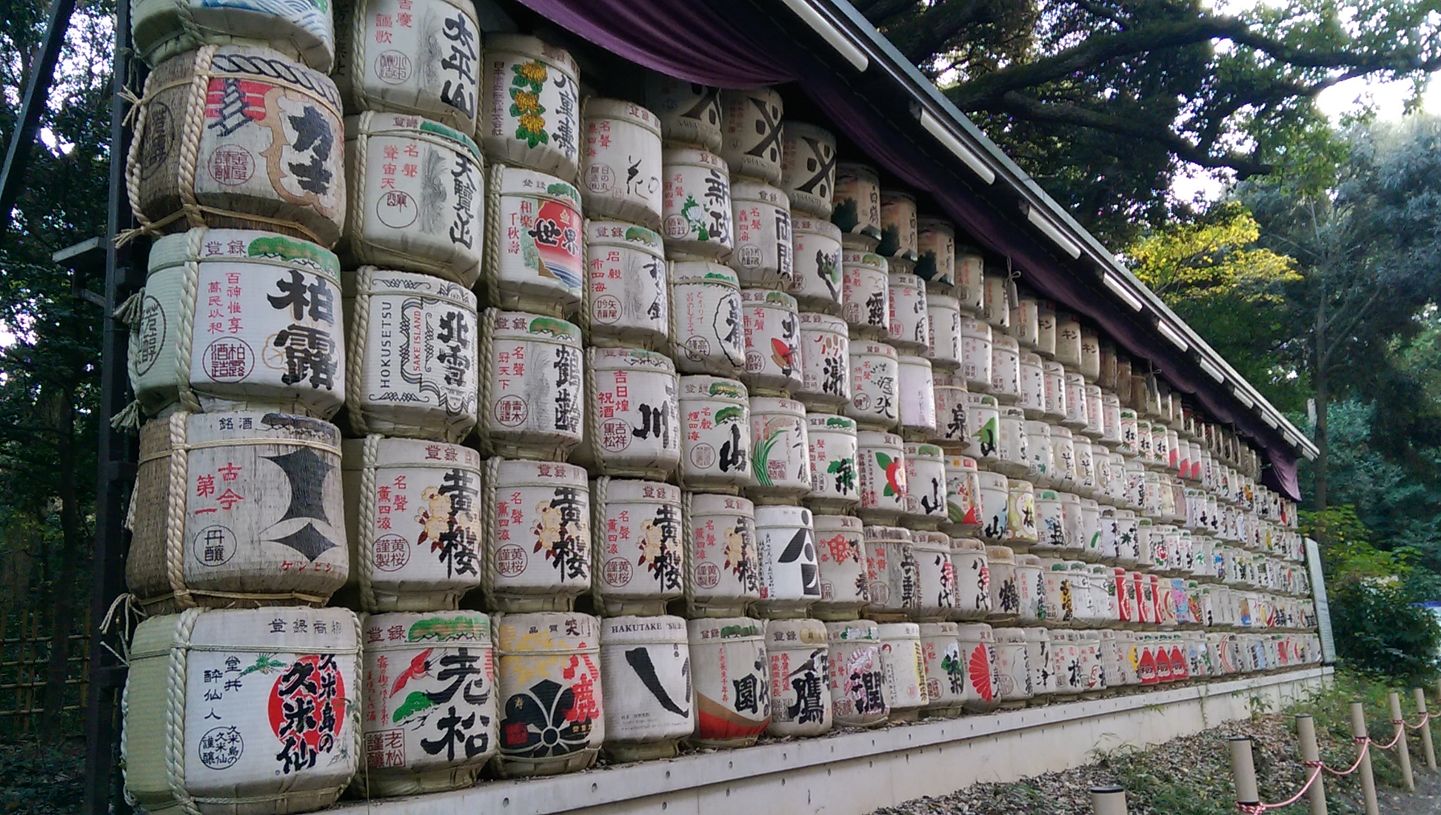 還有這些釀酒,這邊是日本酒,道路另一側是葡萄酒。各大神宮都看得到,是獻給神明的酒。