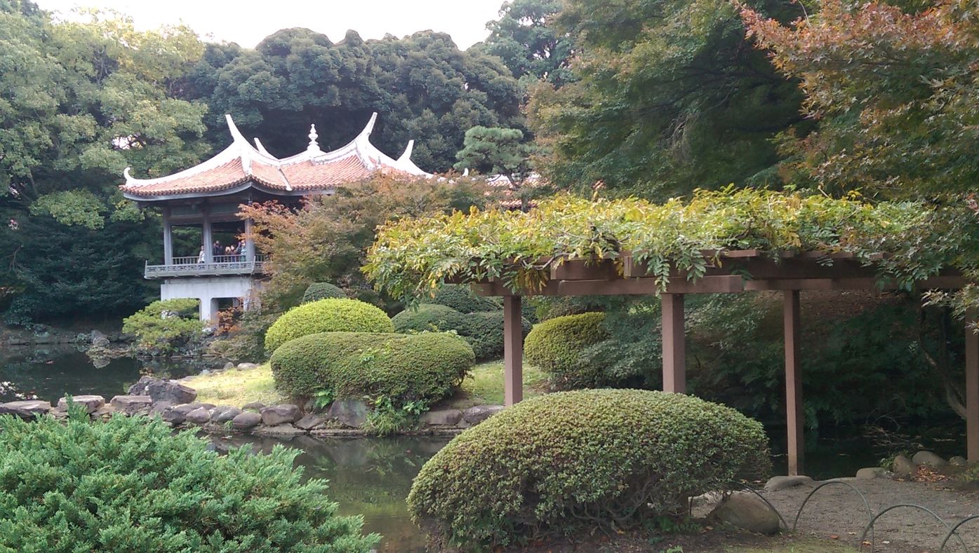 話說這樓叫做台灣閣,極具台灣舊時的福建建築特色,這風格是在日本非常少見的。這建物是當時住在台灣的日本人,為了祝福天皇結婚而建造的,是說新宿御苑本來就是天皇的花園。