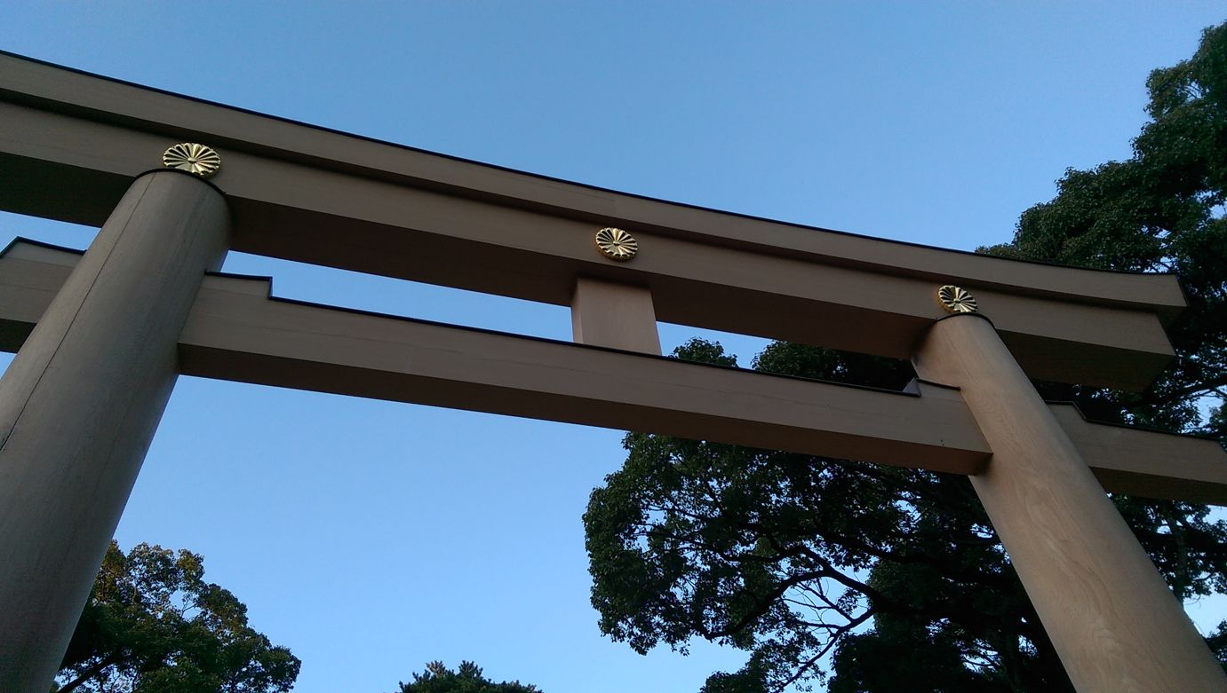 終於來到本殿,走超久,結果最裡面在整修,有趣的是整修中的圍牆上面還印著神宮的樣子,假裝是臨時的神宮XDD,小小一間,老實說,有點單調,但人潮超多,可能明治天皇在日本人心中真的是非常仰慕的天皇,畢竟明治維新奠定了日本強大的基石。話說那鳥居也太乾淨了,明明是在戶外耶。