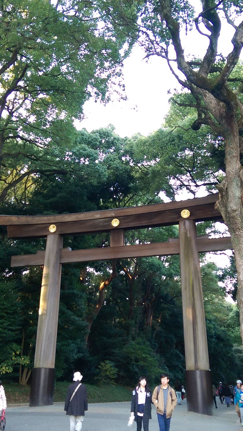 前往明治神宮!話說這日本最大的鳥居是用台灣的1500年的扁柏做的,也太大了吧,超級雄偉。