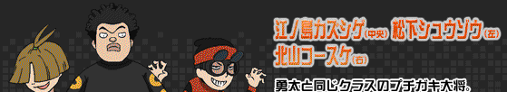 勇太的同班同學,身材壯碩,雖然有時會以蠻力欺負他人,但其實也有善良跟講義氣的一面。