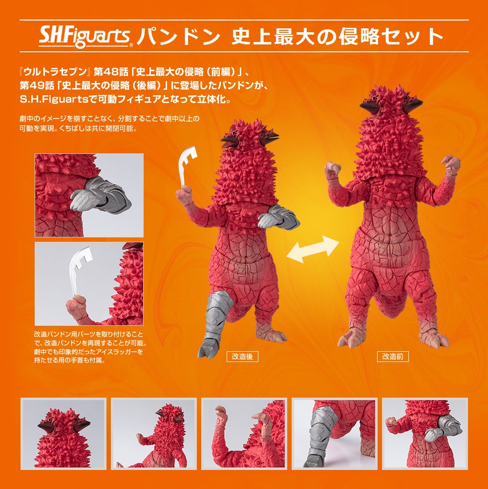 ,PANDON)是首次登場於《超人七號》TV最終章的知名怪獸。「S.H.Figuarts 龐頓 史上最大侵略組」之販售乃採取於BANDAI官方線上商店PREMIUM BANDI限定販售之形式,日本PREMIUM BANDI已於2018年3月23日開始接受預訂,並預計於2018年8月開始寄送。