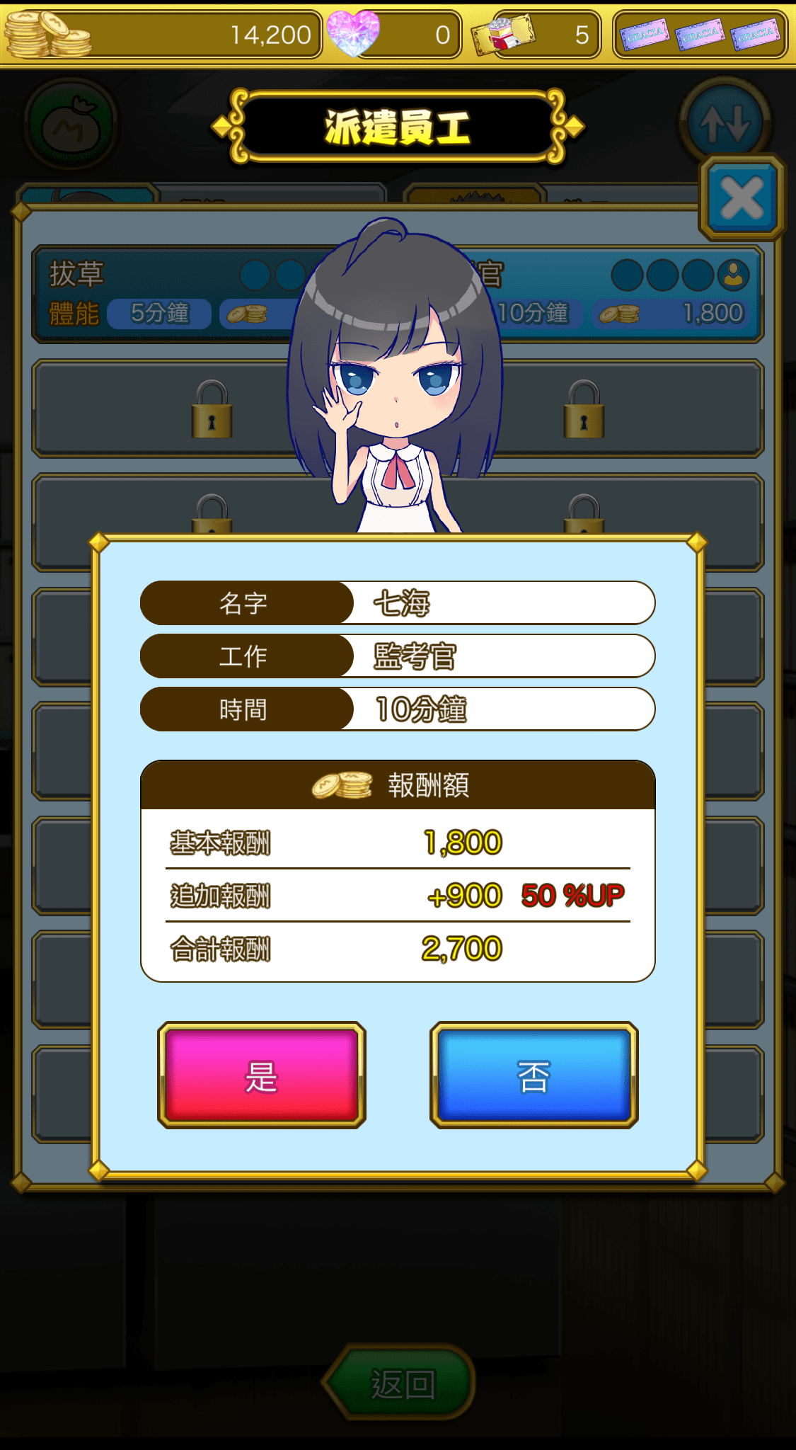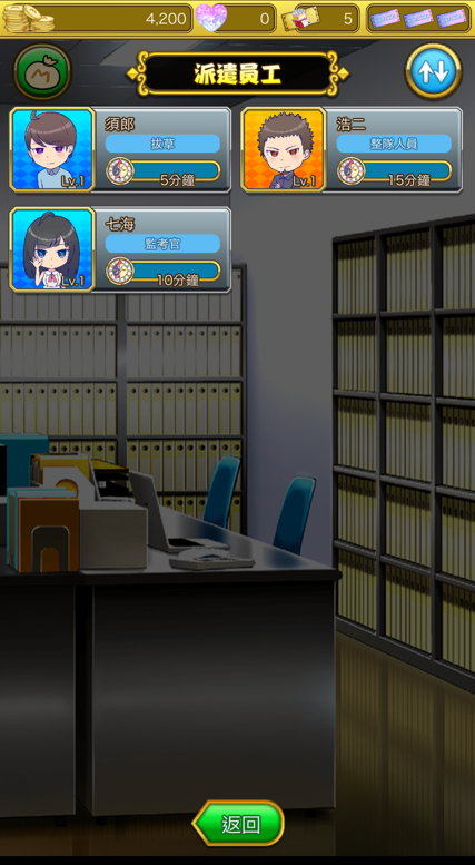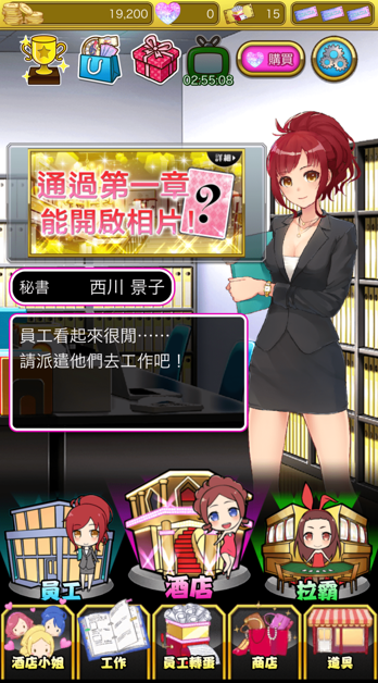 通過抽卡可以獲得員工,即使免費抽卡也能獲得不錯的結果。所以若是願意悠哉的進行遊戲的話不氪金也完全沒問題。