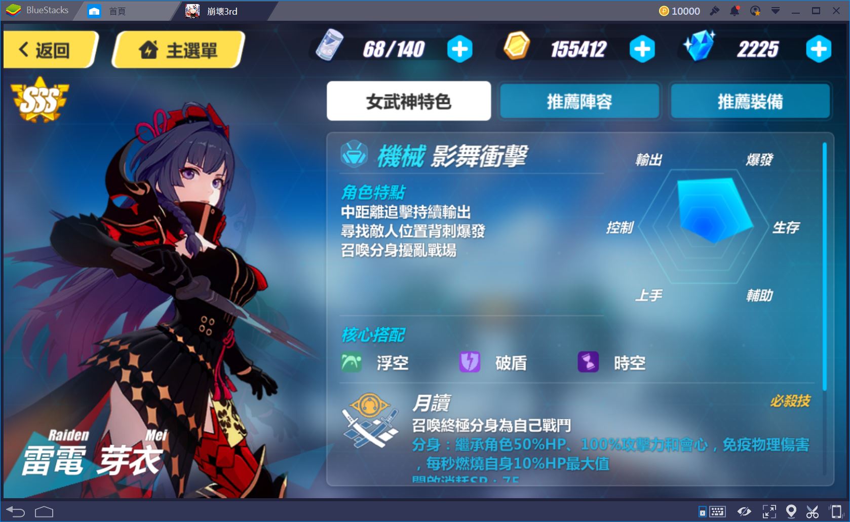 該角色建議使用階級是S,如果沒有S 建議優先使用其他更好的機械物理角色,再只有A階段會很難展現出強大傷害。
