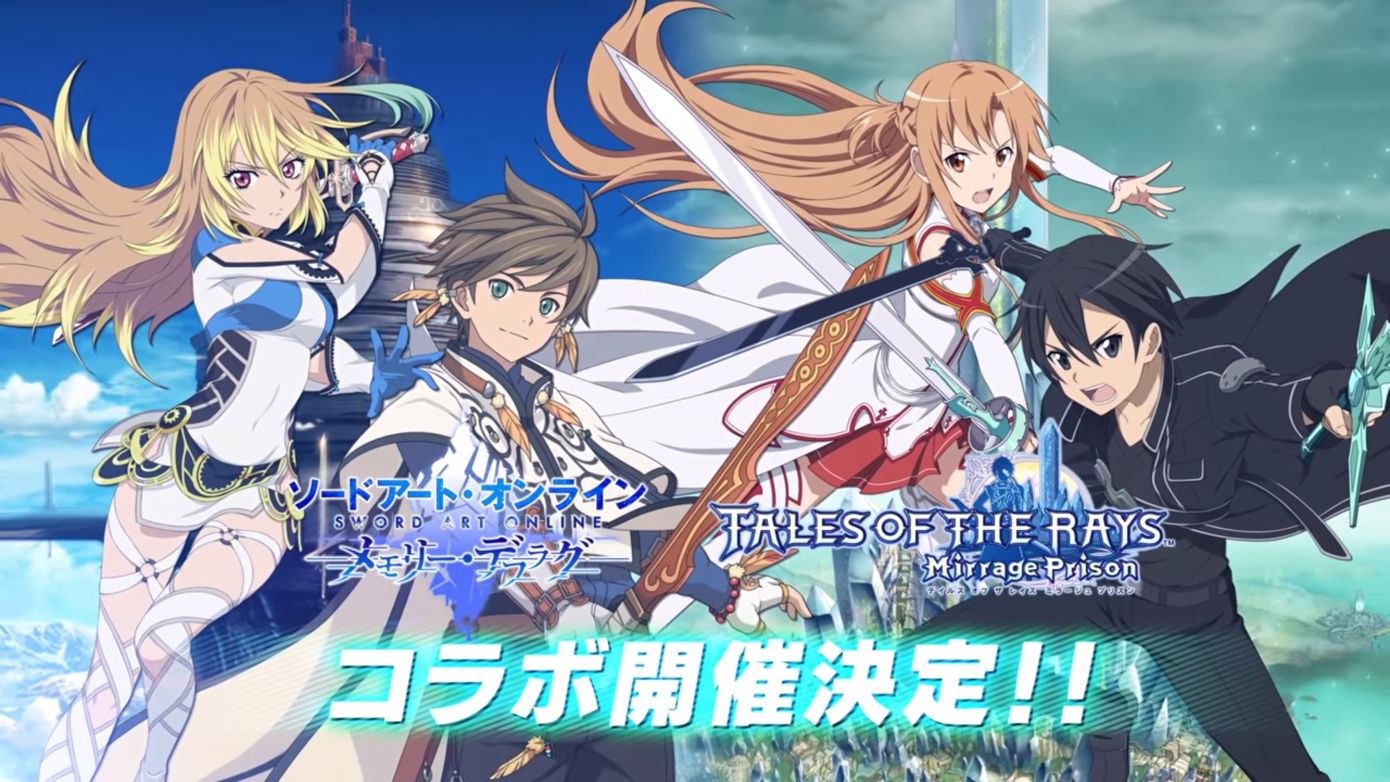 日本BANDAI NAMCO Entertainment(南夢宮萬代)旗下的熱門RPG傳奇手遊《時空幻境 鏡光傳奇(テイルズ オブ ザ レイズ/TALES OF THE RAYS)》,於日本國內深受許多玩家歡迎,目前已收錄歷代角色超過75名。2018/8/16開始與刀劍神域.記憶重組展開聯機合作活動兩個禮拜。 桐人與亞絲娜戴上Amusphere 進入遊戲後,卻身處在不屬於ALO的世界,同時身上又穿著SAO時期的服裝,為了能夠回到原來的世界,兩人將與歷代傳奇中的英雄與夥伴們,共同合作通過未知領域的樓層Boss
