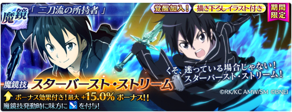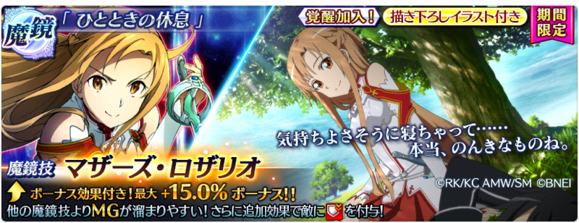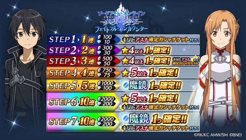 合作期間魔鏡池一樣5%機率 開放10連免費抽 另外再開放無課鑽石Step必中魔鏡 絕對讓你帶至少2個亞絲娜或是桐人的奧義回到隊伍