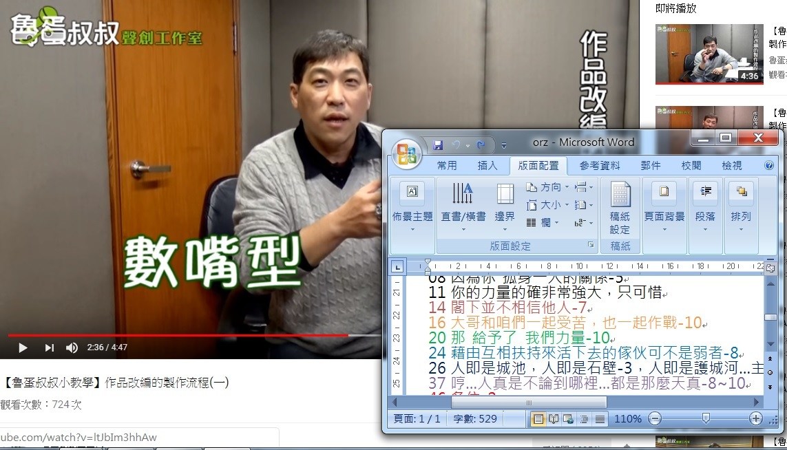 也因為受到了教學影片的影響,太在意對嘴的「數嘴」,變得有點鑽牛角尖…事後想想,人家說的是作品改編、前製作業的方法,我是只用現成影片和字幕配音的練習,去數嘴數出來也不能改字幕啊。自主學習還真的是慢半拍才頓悟,有時花了太多時間摸非主要的東西,可能也走了一點冤枉路;期望華視配音訓練班的課,可以借專業前輩的經驗,很有系統的教學。