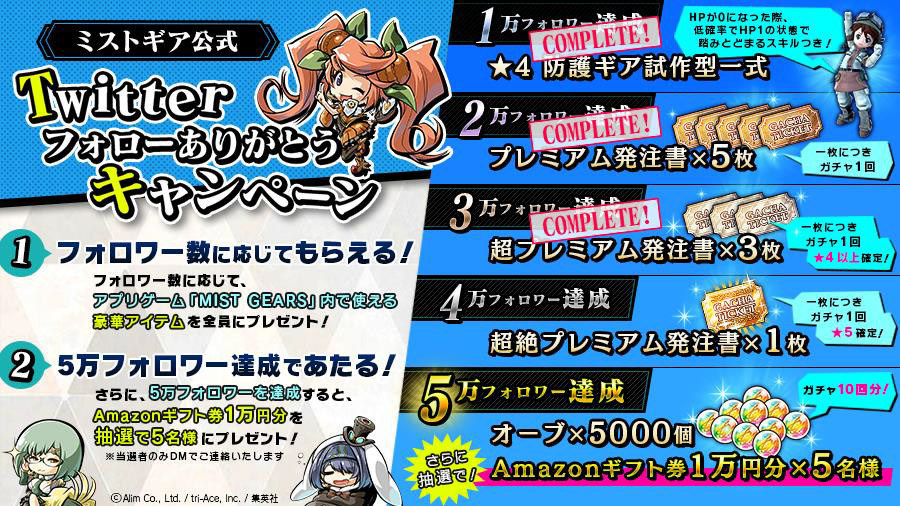 - 跟隨人數達到 5 萬:5000 寶珠+10000 日圓亞馬遜禮券 ×5 人