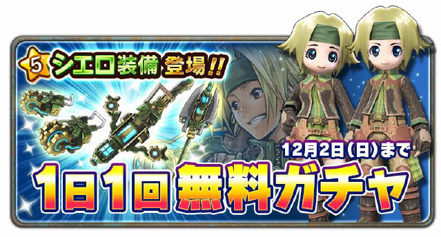 即日起至 2018 年 12 月 2 日,每天都能免費抽一次轉蛋。該當轉蛋池為「榭羅裝備轉蛋」,總共可以免費抽七次喔!